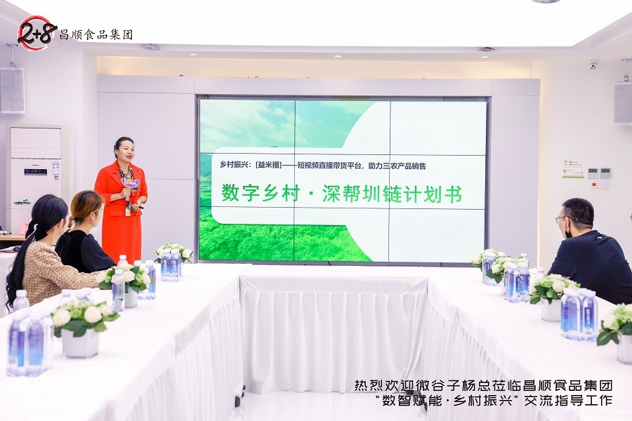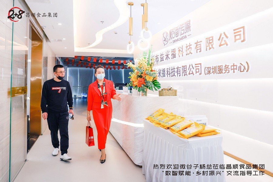 2022年11月22日下午,深圳微谷子科技有限公司領(lǐng)導(dǎo)楊總蒞臨昌順食品集團(tuán)就“數(shù)智賦能·鄉(xiāng)村振興”益米播深幫圳鏈項(xiàng)目進(jìn)行交流指導(dǎo)。昌順食品集團(tuán)董事長(zhǎng)肖新節(jié),順播傳媒總經(jīng)理李維攜集團(tuán)公司商務(wù)部同事陪同接待。
